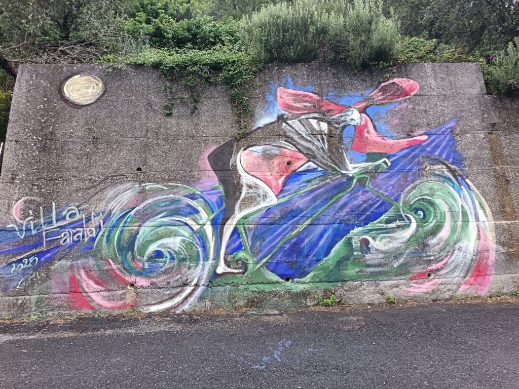 Opere Opere in spazi pubblici Ciclista Floreale 2025 Ciclista Floreale 2025 – Villa Faraldi (IM) – Murales cm 600×1000 acrilico
